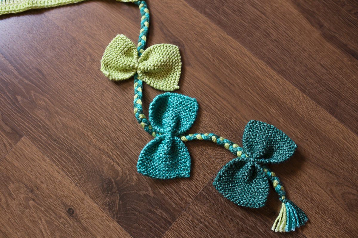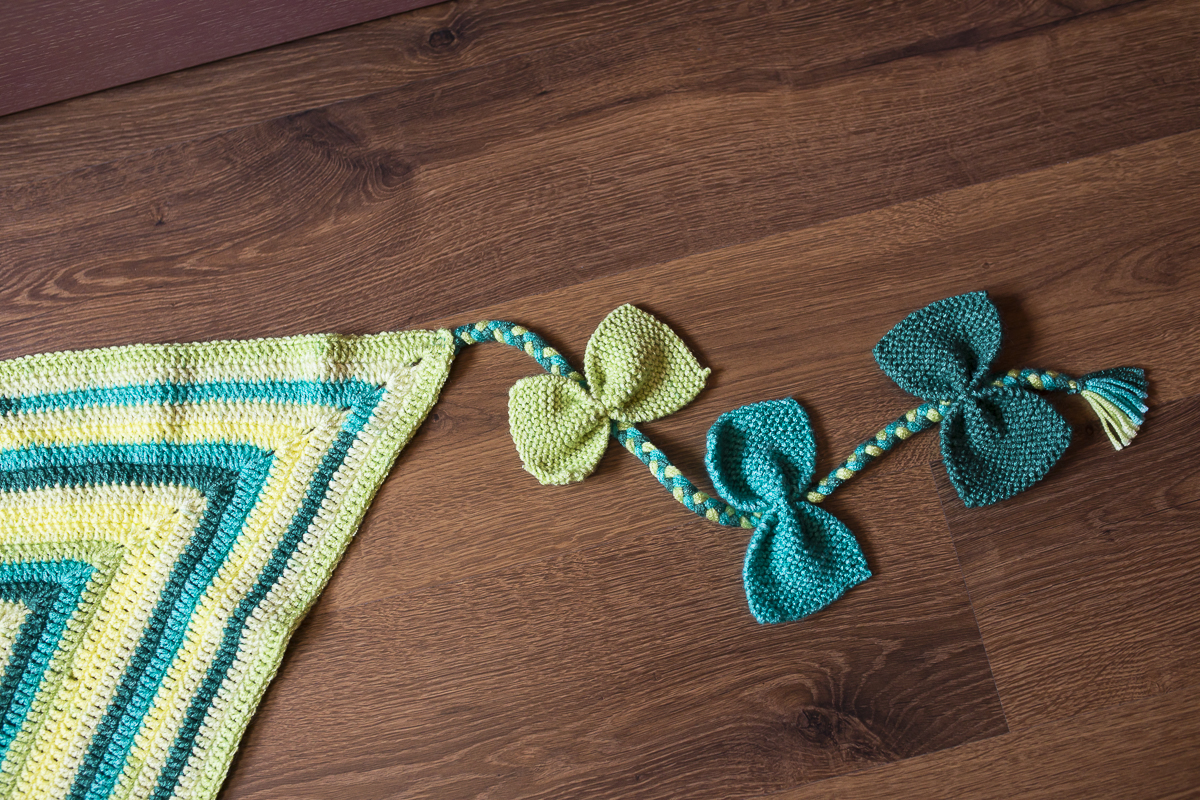 En un círculo mágico se hacen 4 grupos de 3 p. altos separados por 2 cadenetas. Haremos 23 vtas. En la vta. siguiente y en todas las demás, menos las 7 últimas vtas. haremos lo siguiente: En las 2 cadenetas del principio que formarán las 4 esquinas, se hacen 2 p. altos 2 cadenetas y 2 p. altos. Esto se hace en 3 esquinas, en la cuarta serán 3 p. altos 2 cadenetas 3 p. altos (señalaremos qué esquina es para hacerlo siempre en la misma). En las 7 últimas vtas. los crecidos de la esquina señalada vuelven a cambiar y haremos 4 p. altos 4 cadenetas y 4 p. altos. Para la cola de la alfombra cometa, haremos una trenza de 45 cm. Cosemos la punta más larga y haremos 3 lazos. Cada uno tiene 16 p. y 12 cm de p. bobo. Se fruncen en el centro y se cose en la cola.ACABADO