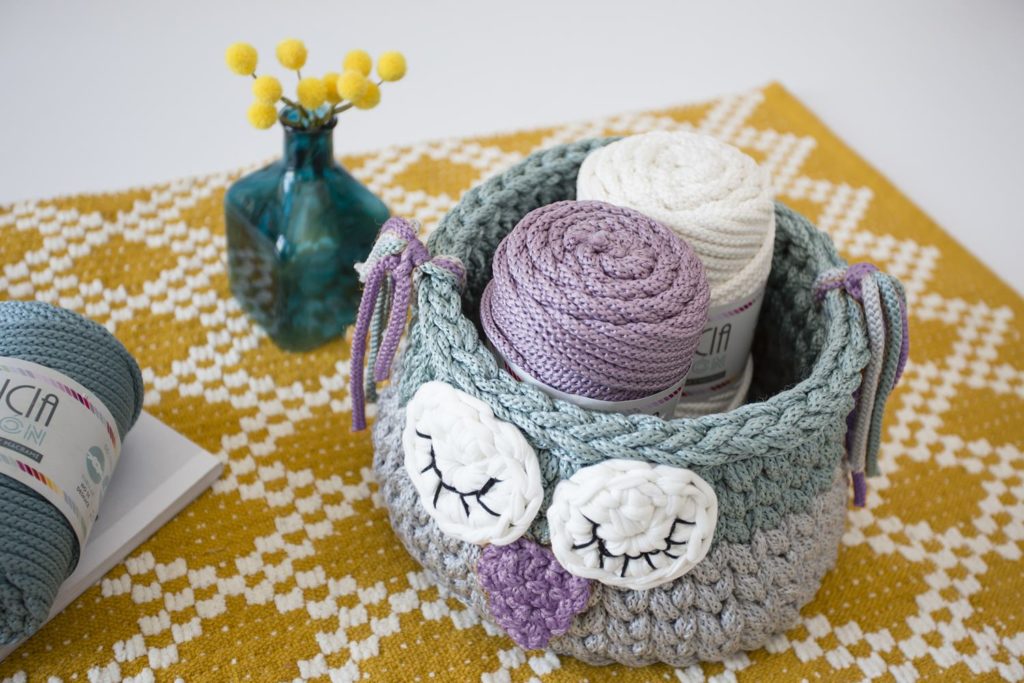 Iníciate en el crochet con esta sencilla cesta búho tejida con Caricia Cordón. ¿Te atreves?