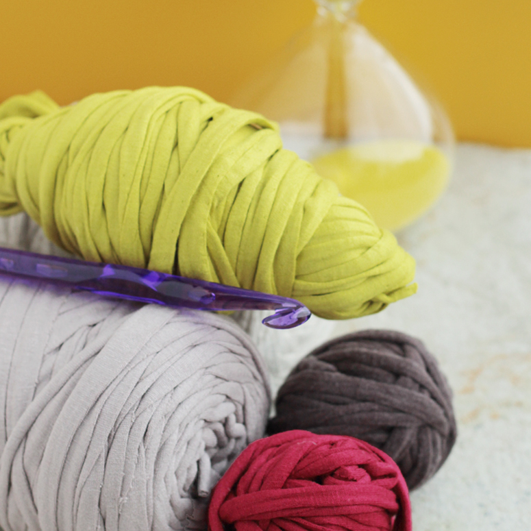 - Hilo de trapillo de colores surtidos (elige la gama que más te guste)