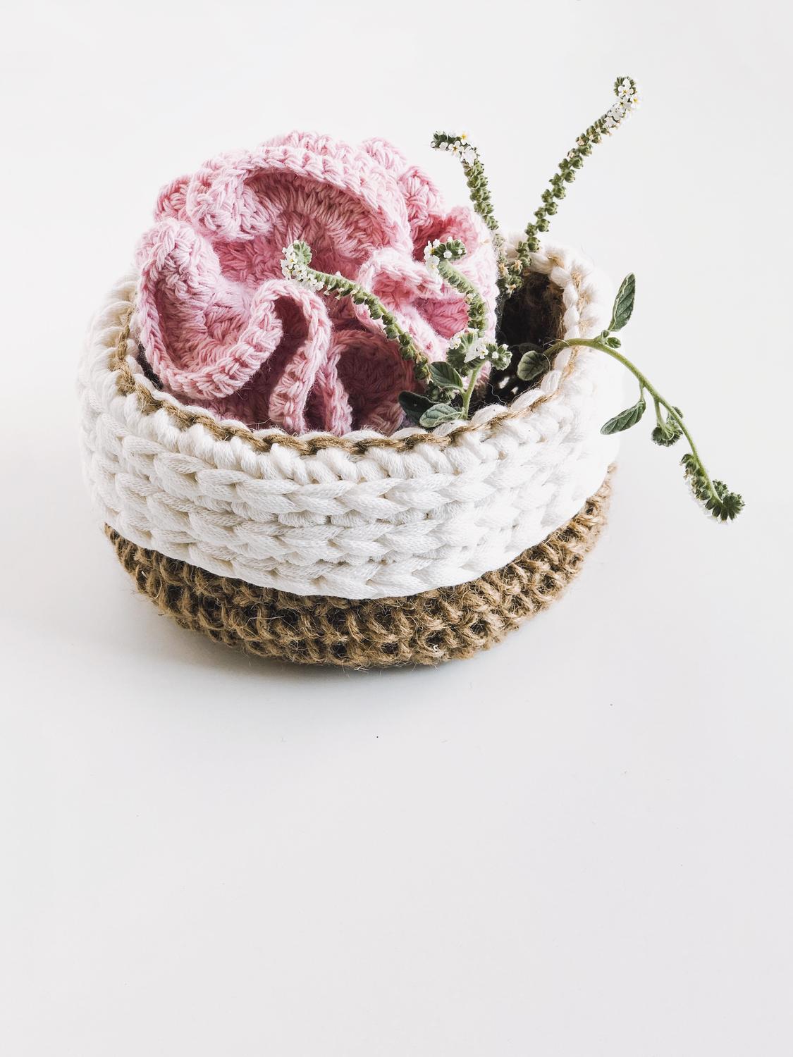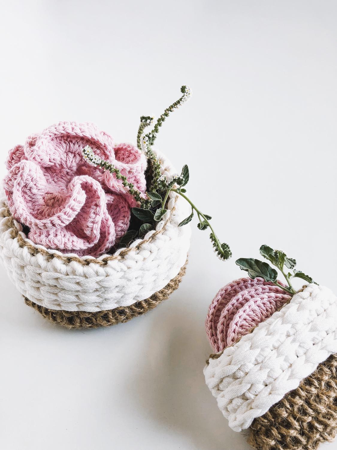 La colección de labores Eco-life de Albita de Plata con lanas Caricia cierra su primera entrega con este patrón tan ideal: unas cestas de baño para que puedas colocar el pack de cuidado personal diseñado también por nuestra colaboradora.