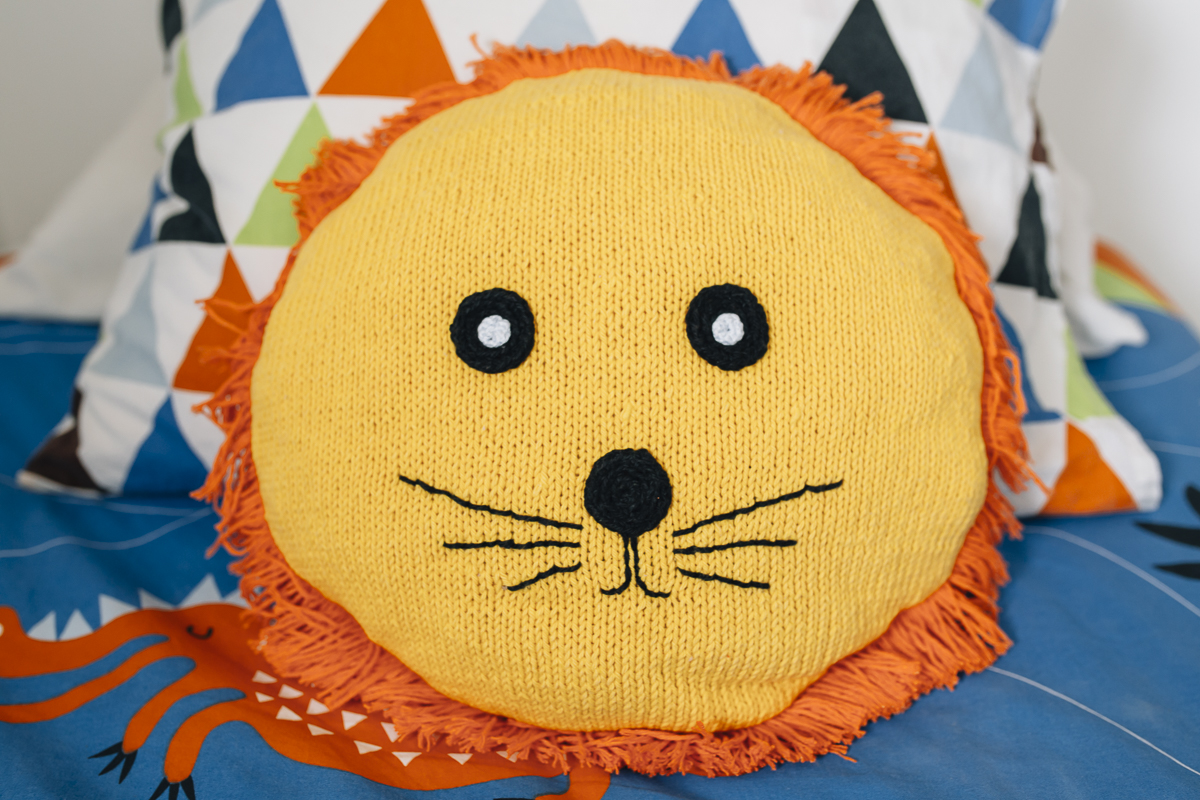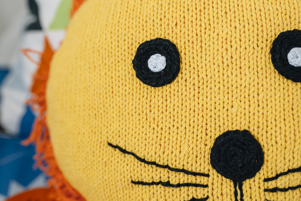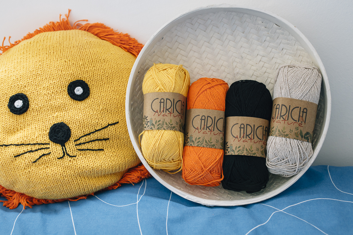 ¿Buscas darle un toque alegre y divertido a la habitación de tu pequeño? Teje el cojín león que os proponemos hoy con el algodón rústico reciclado Caricia Nature. ¡Seguro que le encantará!