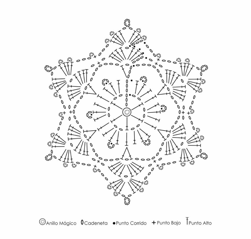 AnMag: anillo mágico ca: cadeneta pr: punto raso pb: punto bajo pa: punto alto pp: punto picot pp4: punto picot de 4caPATRÓN