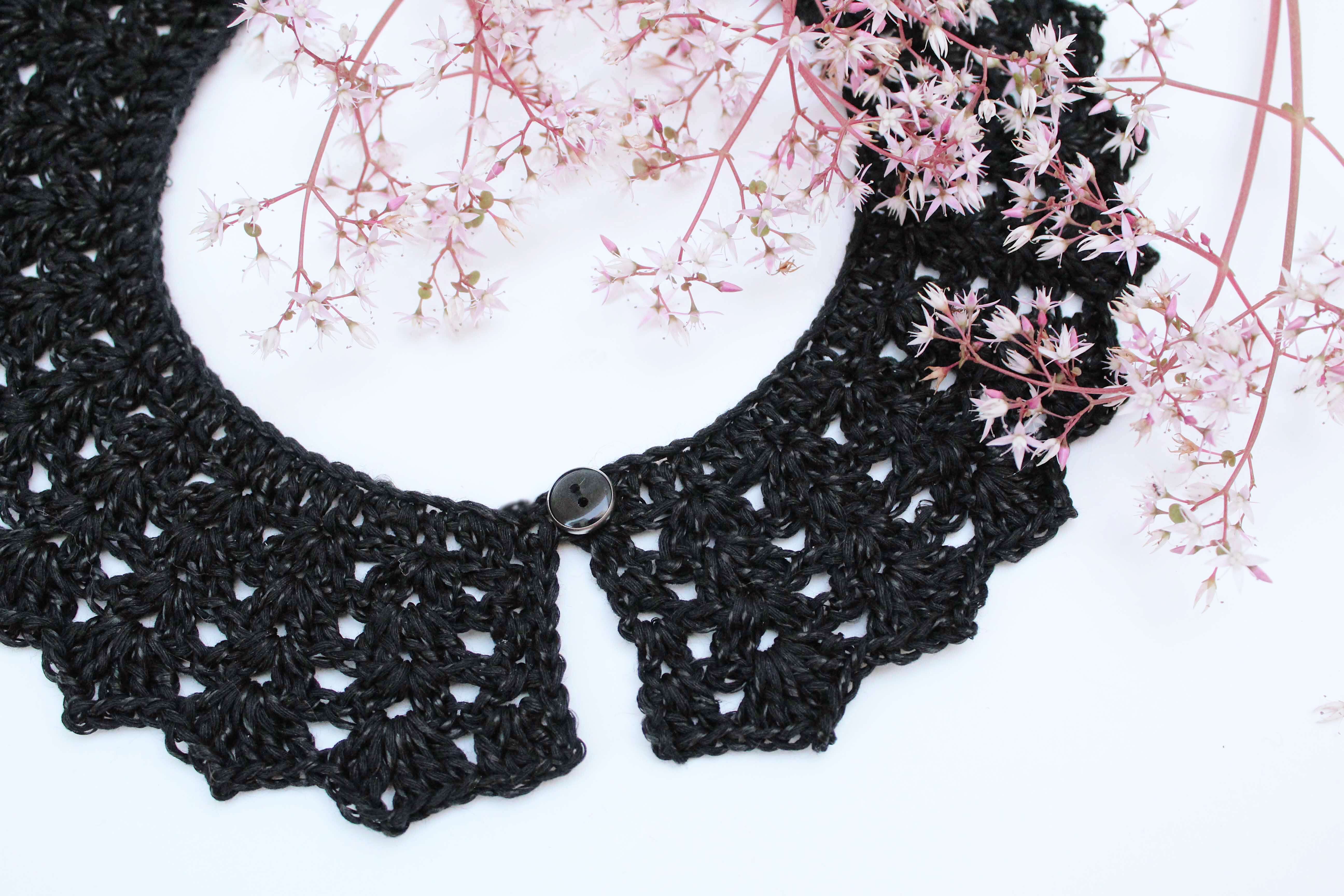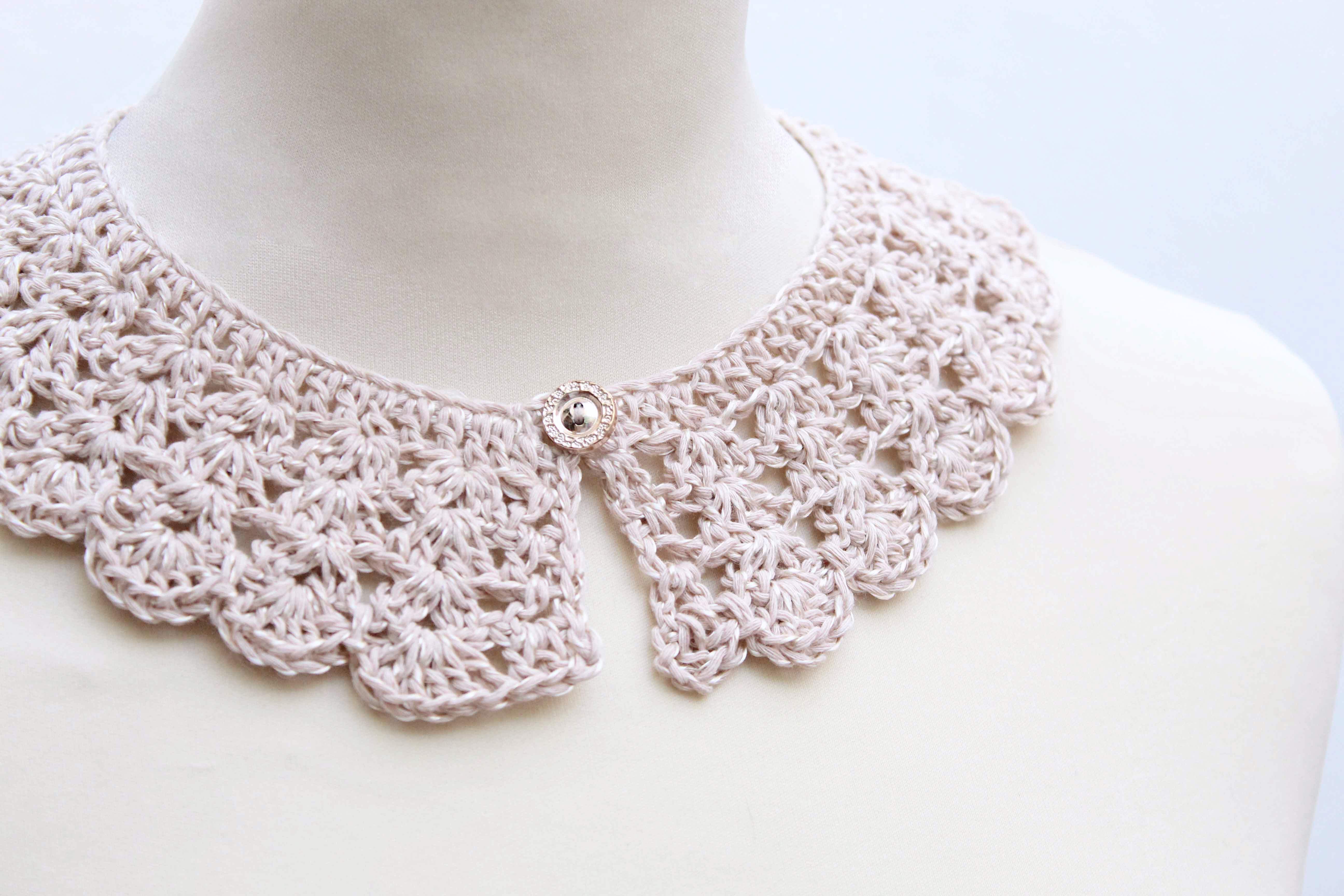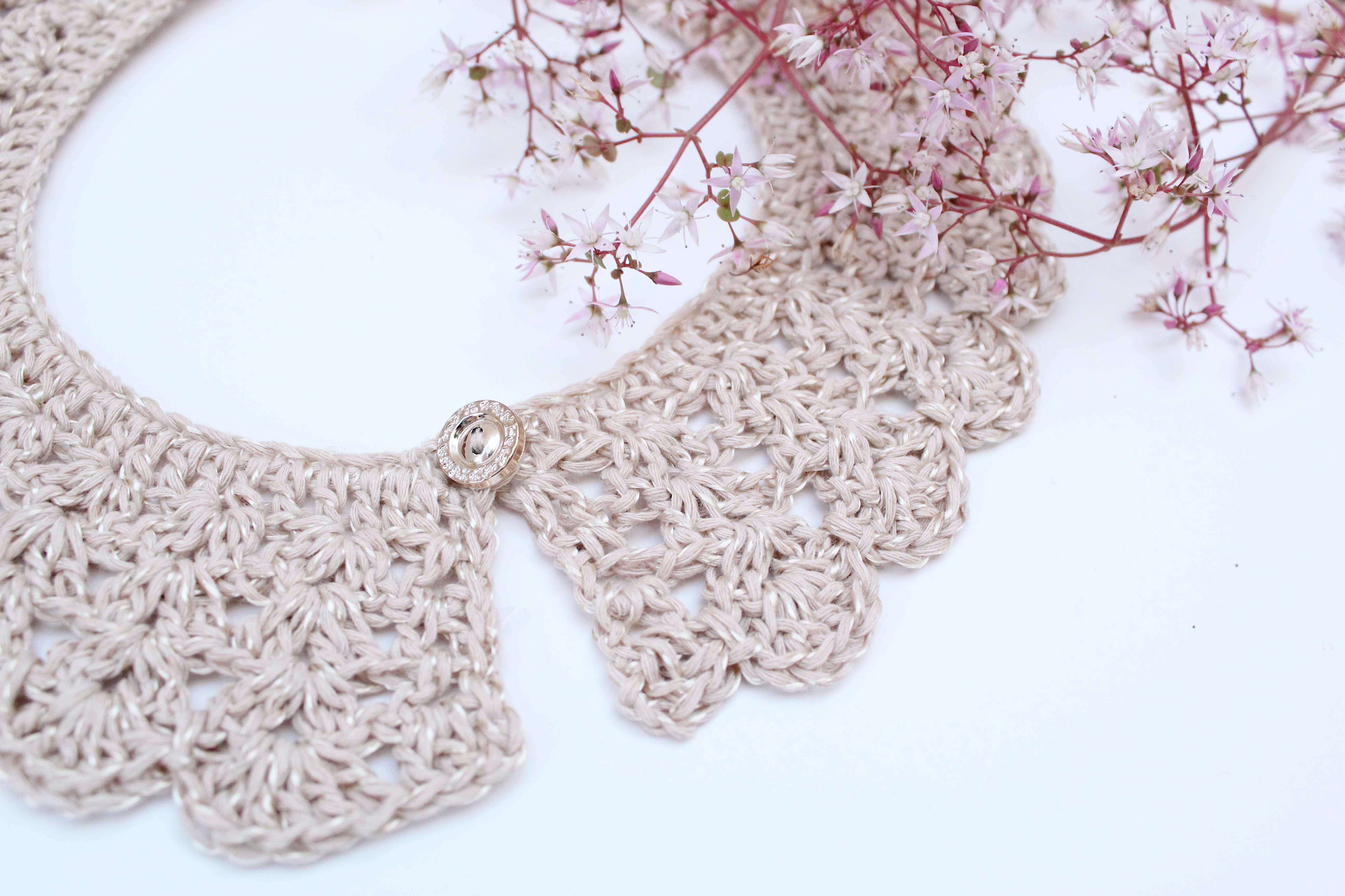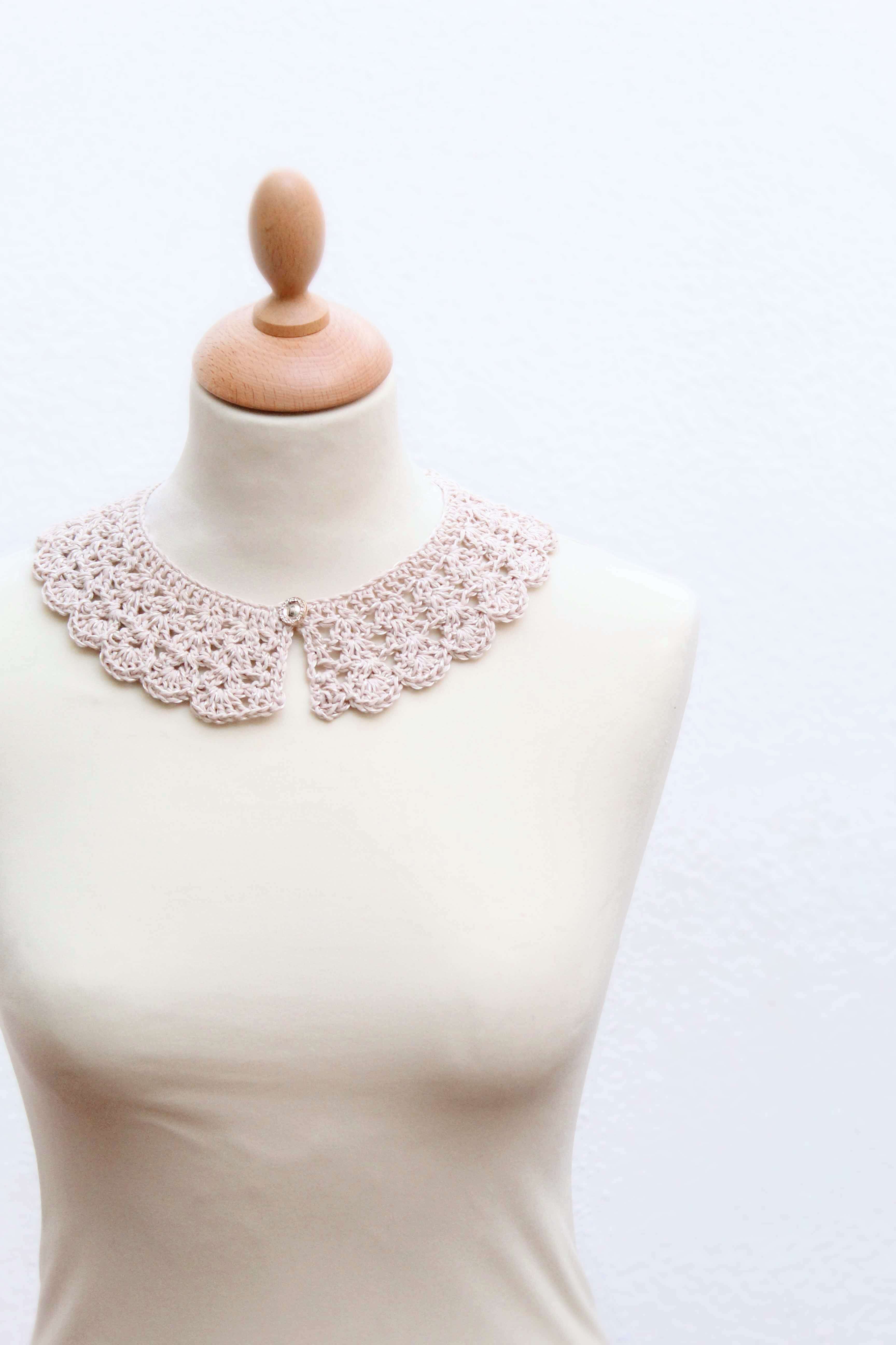 CA - Cadenetas PR - Punto Raso PA - Punto Alto Yo he usado la fibra que indico en el patrón, pero puedes utilizar la que más te guste, adecuando siempre el tamaño de aguja que necesite. v1. Haz una cadeneta de la longitud que desees, prueba a lo largo del cuello y ajusta según tus necesidades. La cadeneta SIEMPRE tiene que ser múltiplo de 3 + 1. En mi caso, con mi fibra y mi número de aguja, hice 103ca (102 + 1). v2. 1pa en la 4ªca desde la aguja. Después todo pa hasta el final de la cadeneta. Girar. v3. 3ca, 1pa en el 1er punto, *saltar 2p, 4pa juntos en el siguiente punto* Repetir desde *a* toda la vuelta hasta que queden 3p, saltar dos y hacer 2pa en el último punto. Girar. v4. 3ca, 1pa entre los dos primeros puntos de la vuelta anterior, *4pa en el medio de cada grupo de 4pa de la vuelta anterior*. Repetir de *a* toda la vuelta hasta llegar a los últimos 2pa y hacer 2pa entre ellos. Girar. v5. Repetir v4 *Puedes repetir esta vuelta tantas veces como quieras, así podrás hacer el cuello del ancho que más te guste. v6. 3ca, 2pa entre los dos primeros pa de la vuelta anterior, 1 pr en el siguiente espacio entre los grupos de pa. *6pa entre los 4pa del grupo de la vuelta anterior, 1pr en el espacio entre dos grupos de 4 pa* Repetir desde *a* hasta que queden 2pa. 3pa entre los dos últimos pa. Remate: nos iremos con pr por el borde del cuello hasta que lleguemos justo al comienzo de la cadeneta de inicio. Hacemos 4, 5 o 6ca (depende del tamaño de botón que vayas a poner) y lo uniremos al comienzo de estas ca con un pr. Con esto estamos formando el ojal. Cosemos un botón en el comienzo de los pa de la v2 (en el otro extremo del cuello).