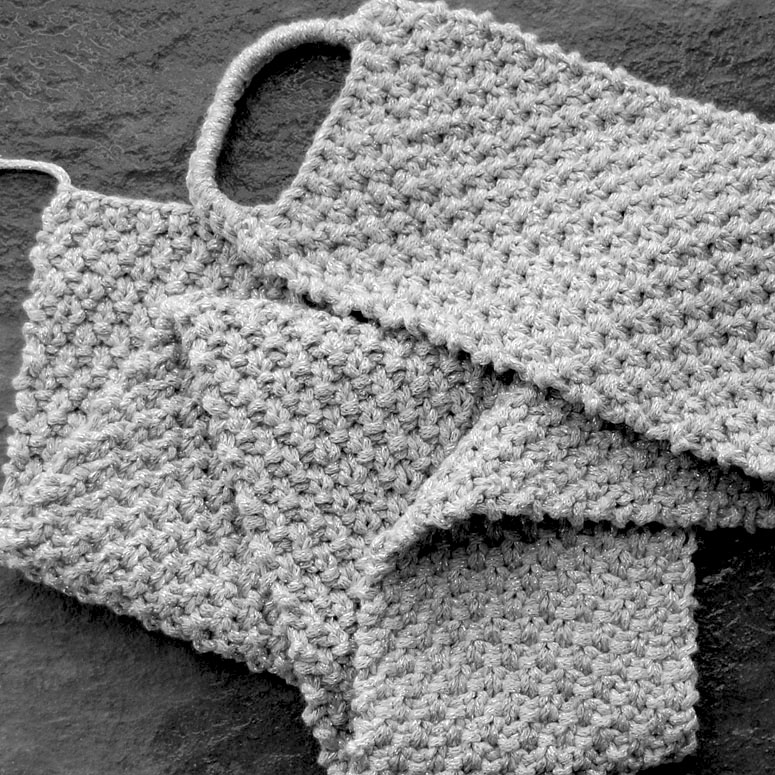 Montar 19 puntos y tejer a p. de arroz doble hasta que mida 85 de largo. Cerrar y dejar hebra.