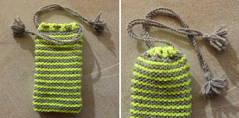 Montar 16 p. y trabajar 116 vtas. a punto bobo. Cambiar cada 2 vtas. de color. Cerrar.