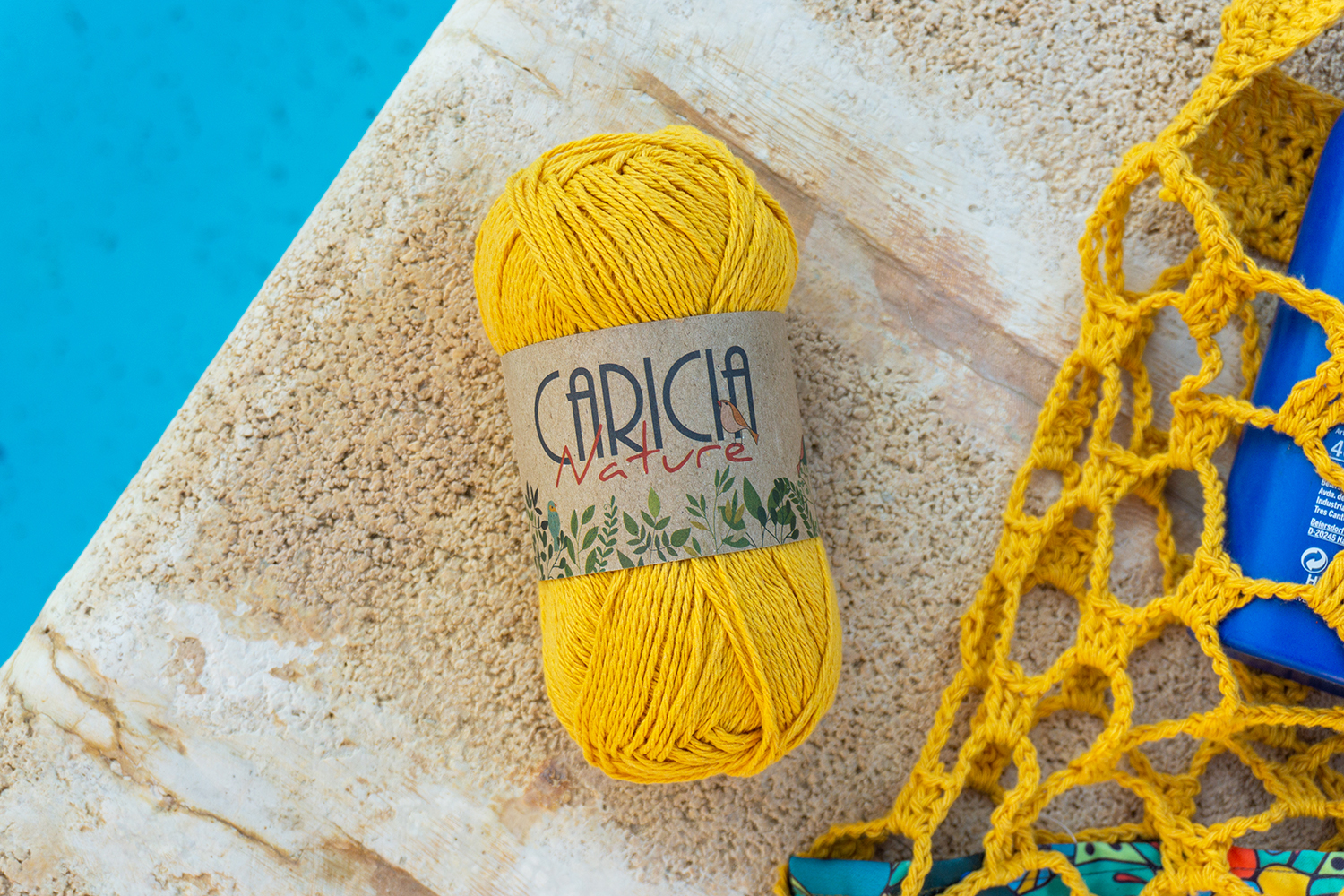 ¡Prepárate para el verano! Crea tu propio maxibolso con Caricia Nature para llevar contigo todo lo que necesitas para la piscina. En tono amarillo y en crochet, este maxibolso es pura tendencia. ¡No te quedes sin él!