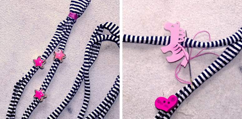 ¿Te gustan los complementos? Hoy te enseñamos cómo crear tus propias pulseras de trapillo. Personalízalas con distintos abalorios. Nosotros hemos elegido estrellas y botones en tonos rosas.