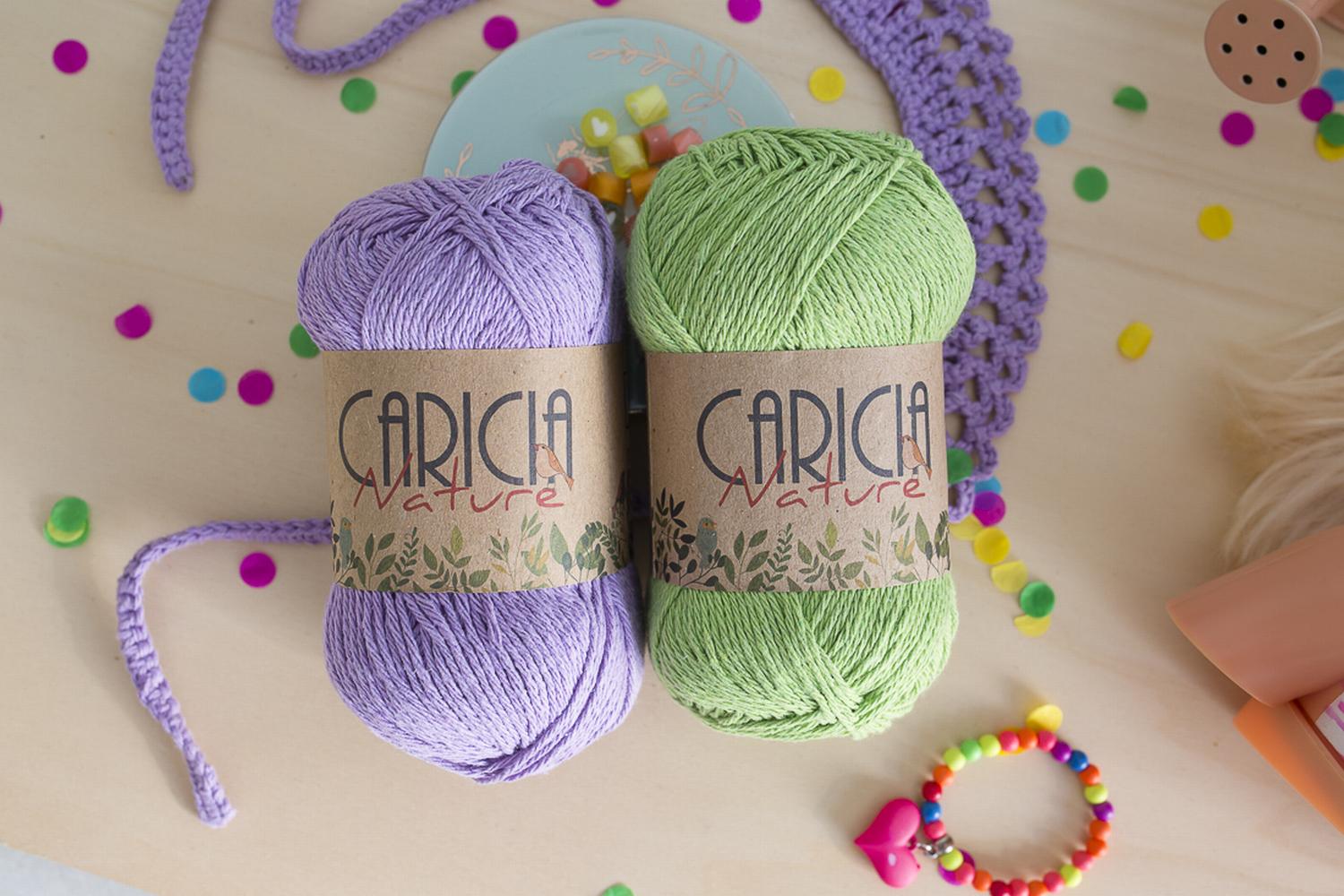 - Caricia Nature Col. 750 (Lila) o Col. 400 (Verde) – 1 ovillo
